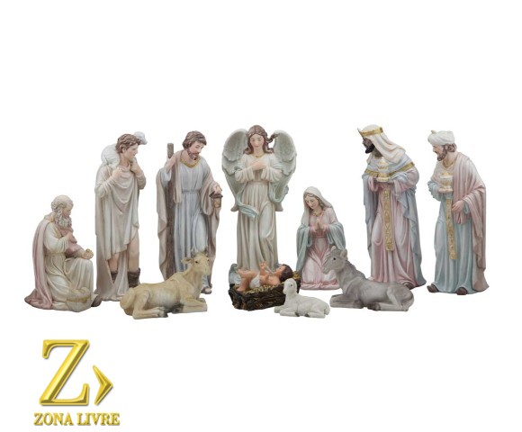 Presépios de resina são representações artísticas do nascimento de Jesus, feitas de um material resistente e durável. Eles retratam a cena do estábulo, com figuras como Maria, José, o menino Jesus, os três Reis Magos, pastores e anjos. Feitos com riqueza de detalhes, possuem pinturas realistas e são usados como decoração natalina, trazendo paz e significado espiritual às celebrações. São peças duráveis e valorizadas, transmitindo um sentimento de esperança e renovação.
